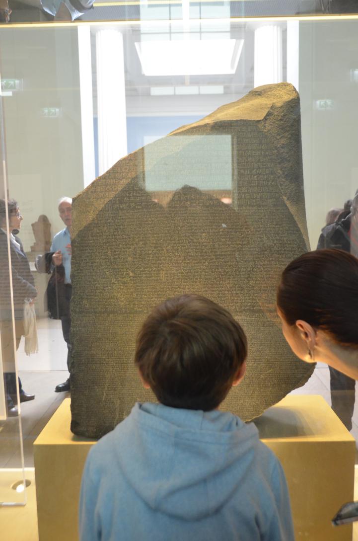 (21. /ex lightbox) Rosetta stone with fascinated visitors