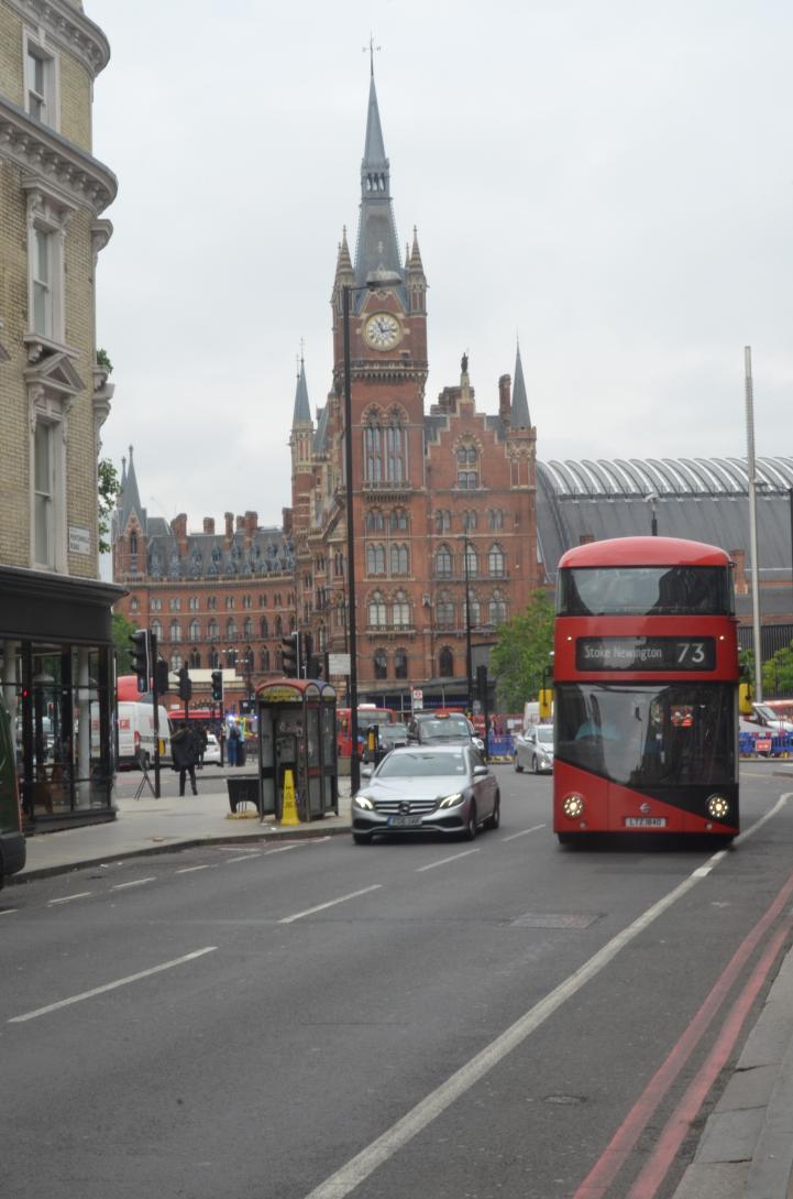 (112. /ex lightbox) St Pancras Railway Station with red bus