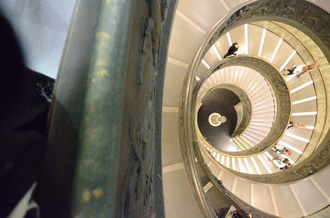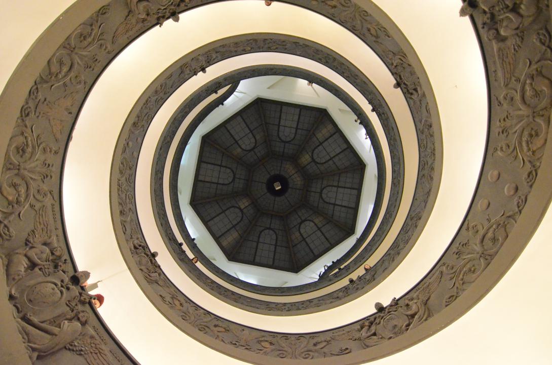 (33. /ex lightbox) Musei Vaticani: bronze spiral staircase at exit from below